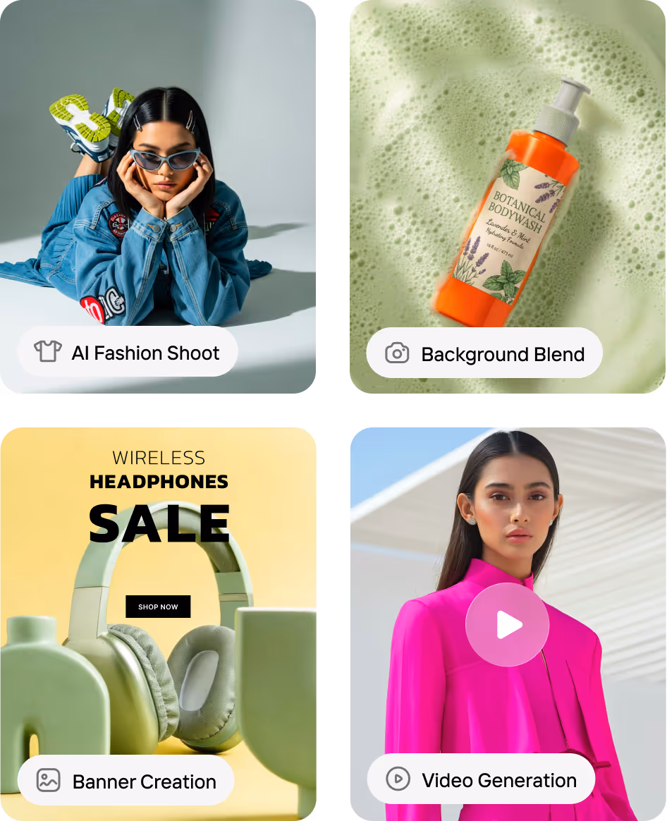 Yes. Product images, in bulk, can be turned into PDP shots, on-model visuals, motion loops, and quick product videos. Your automations can be linked by importing the outputs from one finished project into another, so each step connects smoothly..