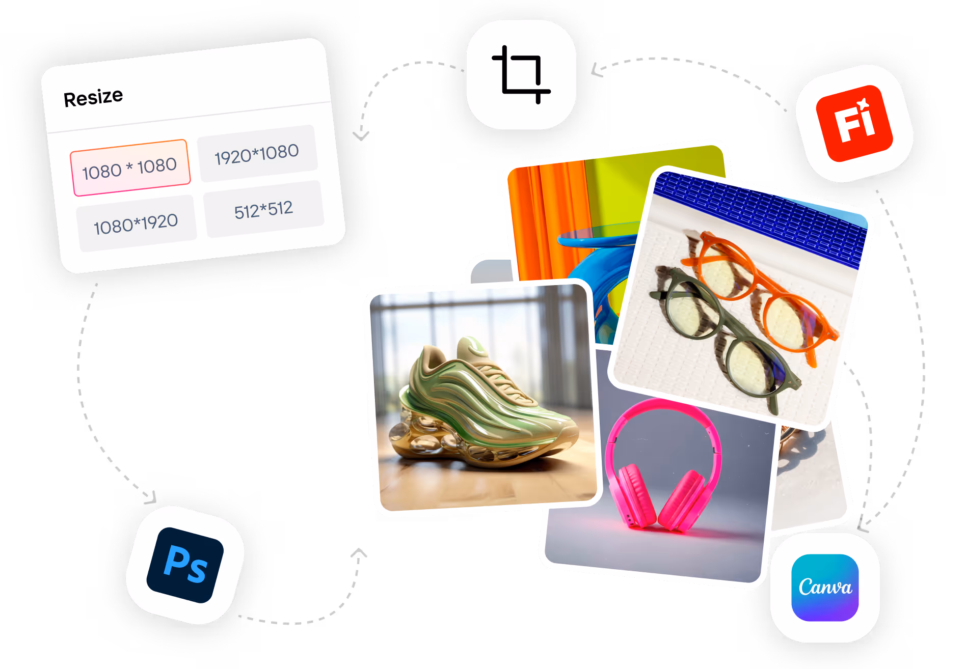 It’s an API-first platform, so you can link it to your DAM or PIM with simple Make.com or Zapier flows, or through direct API calls. No restructuring, no workflow rewrites - your stack stays exactly the same, you just produce content much faster.