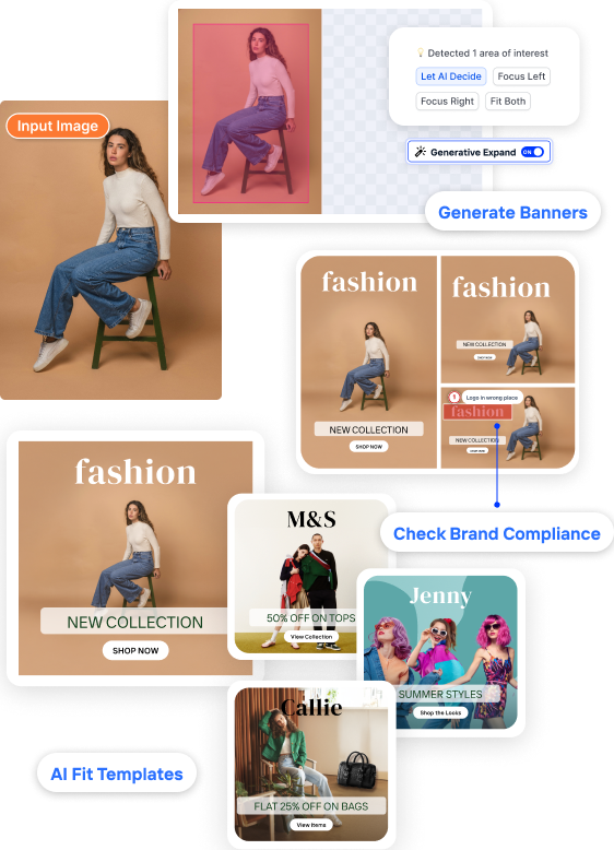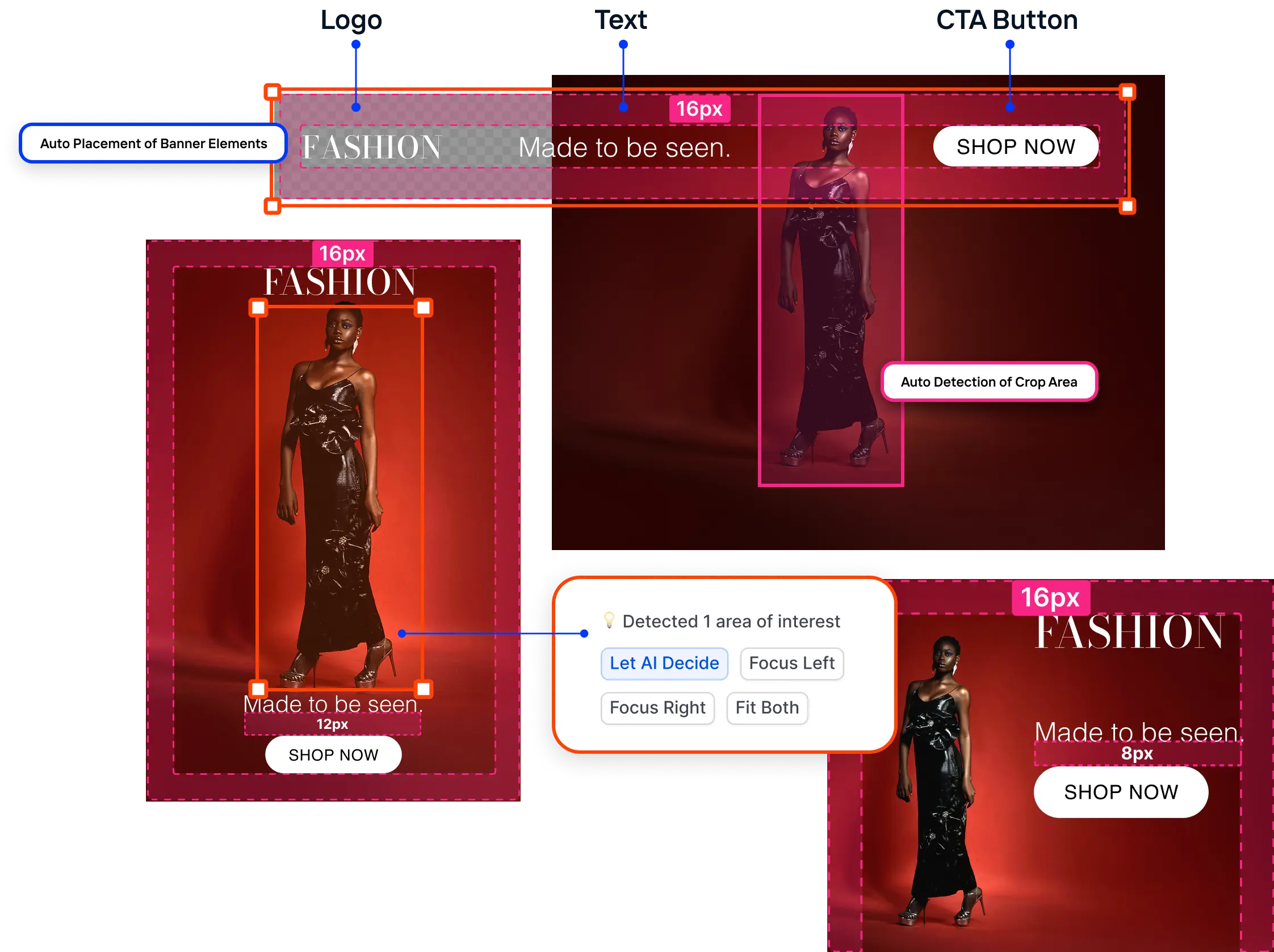 Automatically adjust text, logos, and CTAs to fit various banner dimensions while maintaining design integrity and readability