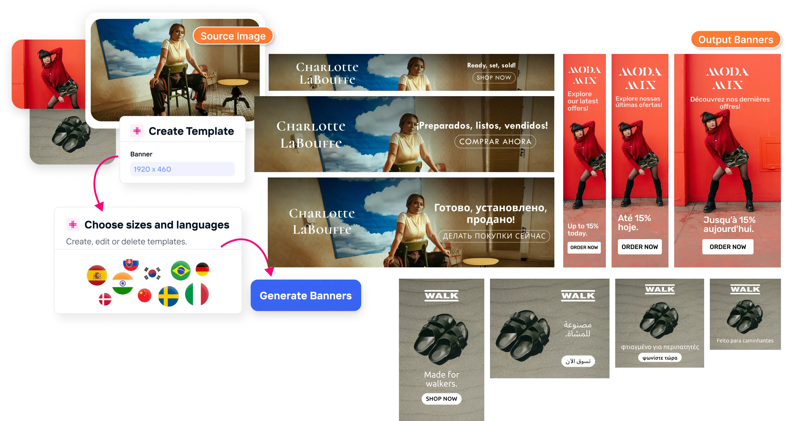 Be it French or Spanish, Crop.photo supports 40+ languages for you to generate banners for different geographies at no extra effort